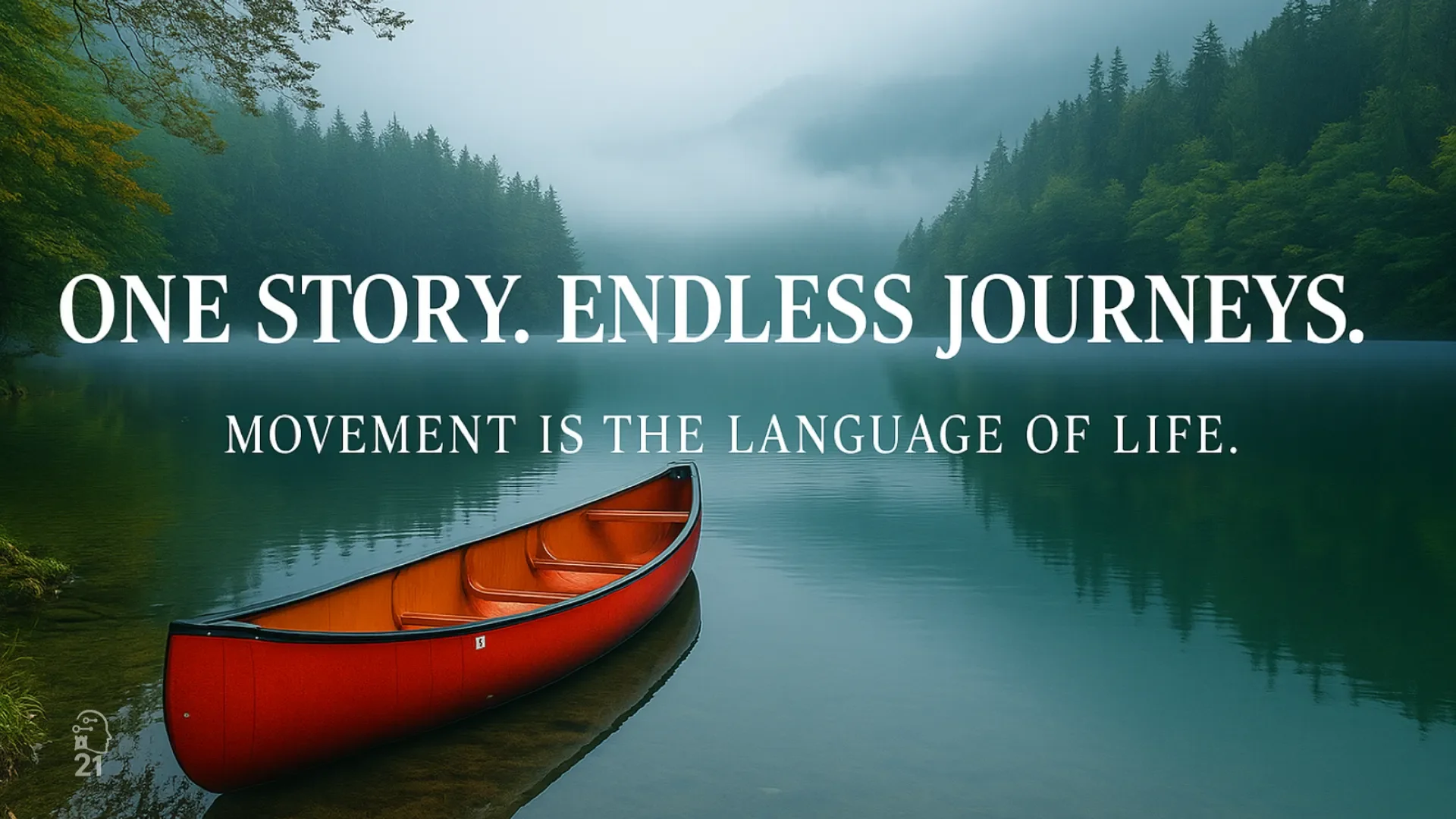 Every life is a single story, but the ways we move through it are infinite. Each step, each river crossed, each turn of the paddle writes a new chapter. The red canoe waits on still water, not to stay still, but to remind us: we are meant for motion.