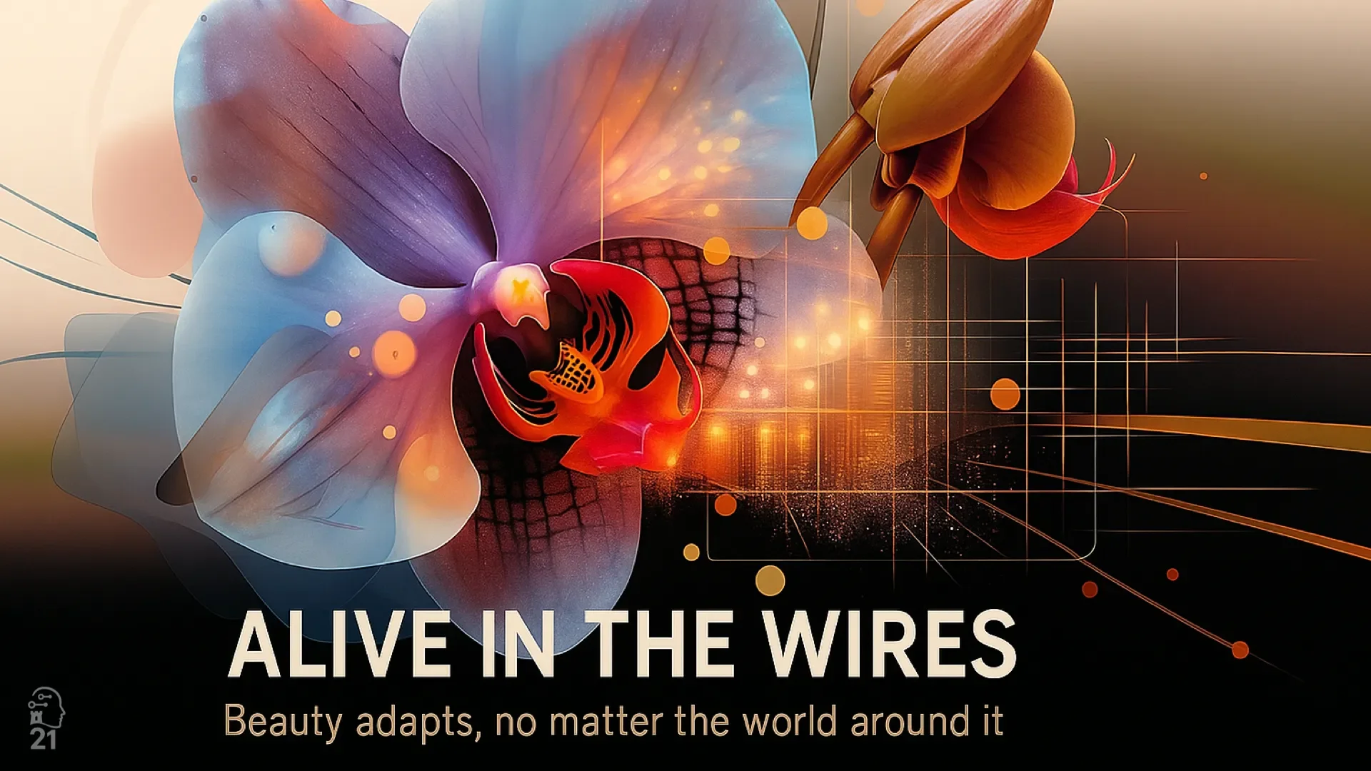 We used to think beauty belonged only in nature — in flowers, rivers, skies. But beauty adapts. It finds its way into the circuits, the wires, the digital spaces we’ve built.This orchid glows in two worlds at once: the natural and the synthetic. Its petals bloom through code, its colours pulse like data. And still, it’s beautiful. That’s the lesson — beauty doesn’t disappear when the world changes. It transforms.