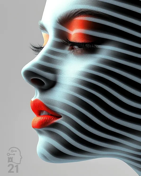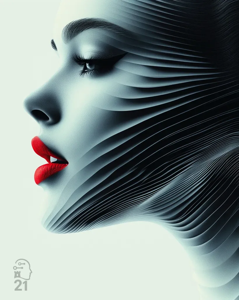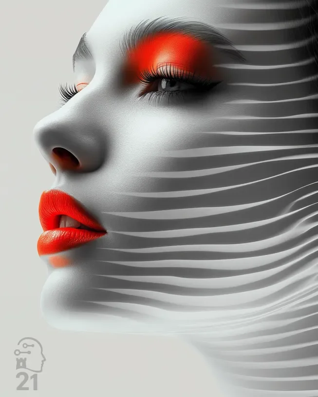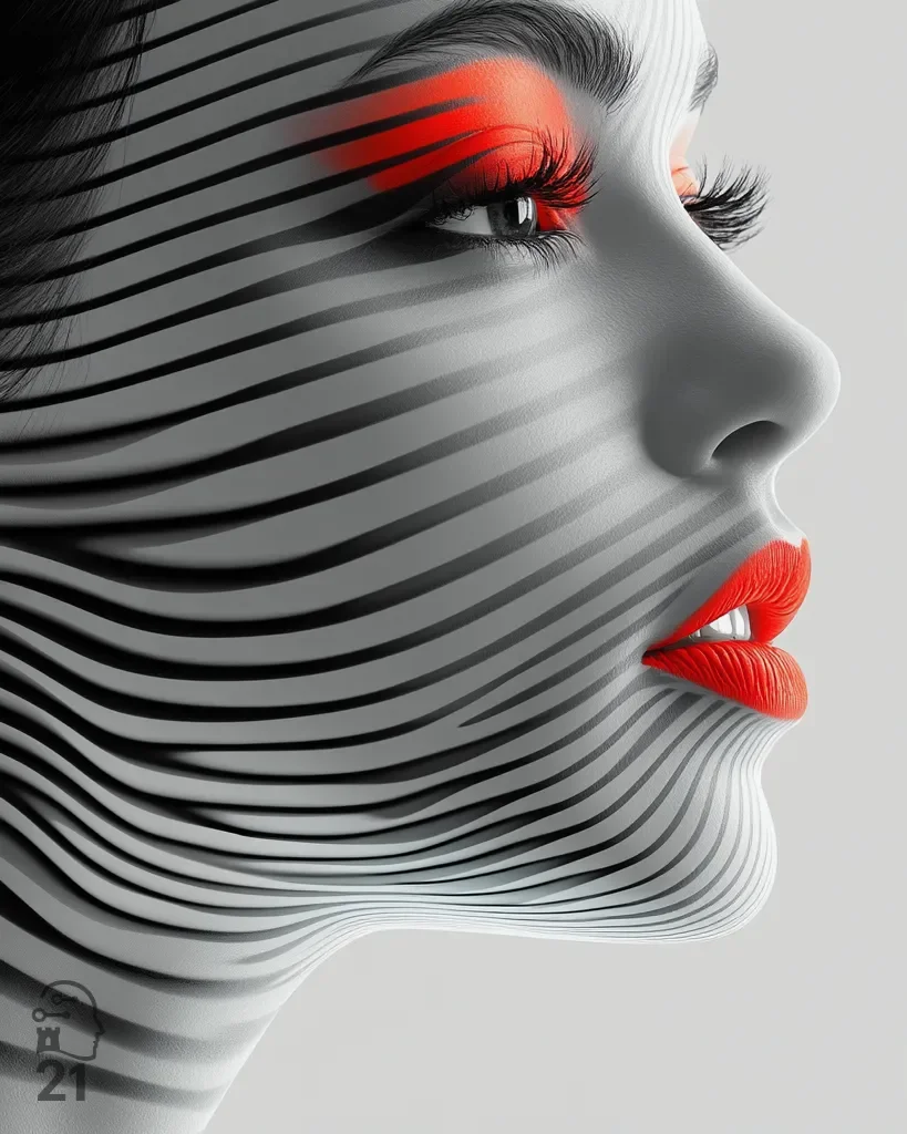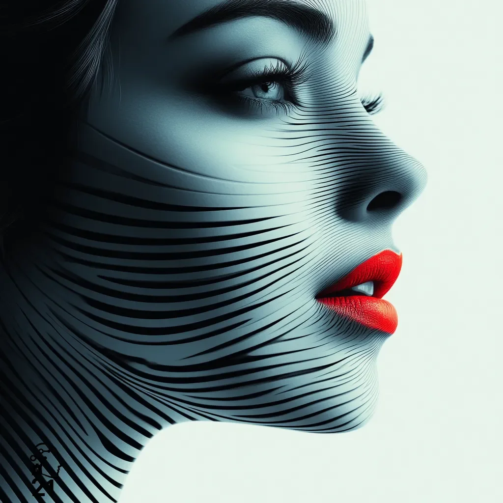 The Stripes gallery transforms portrait into rhythm. Faces emerge through waves of shadow and light, where every curve and stripe suggests both movement and mystery. The contrast of vivid reds against monochrome tones adds intensity, turning each piece into a fusion of elegance, power, and allure.