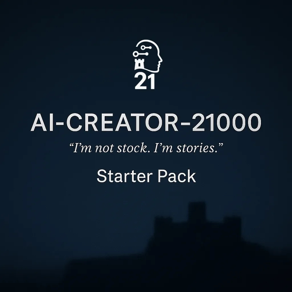 The AI-Creator-21000 Starter Pack is where your journey begins. It’s a curated bundle of digital art that brings together pieces from the galleries and highlights from the blog art project — ready to download in one click.